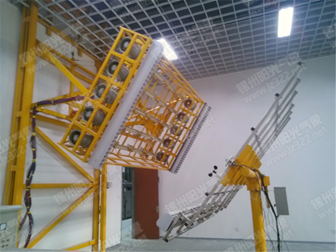 其中室內(nèi)部分所提供的矩陣式人工太陽模擬器是我公司根據(jù)海爾要求設(shè)計生產(chǎn)的新型產(chǎn)品,相較于國內(nèi)現(xiàn)有產(chǎn)品具有更廣泛的可調(diào)行及適用性。同時室內(nèi)部分在太陽模擬下試驗時,系統(tǒng)全部用自動控制與攝像系統(tǒng)完成。光跟蹤傳感器可保證臺面與光源垂直照射。此外全自動旋轉(zhuǎn)控制臺可根據(jù)實驗需要,自動調(diào)整實驗臺面與光源指定的入射角度。