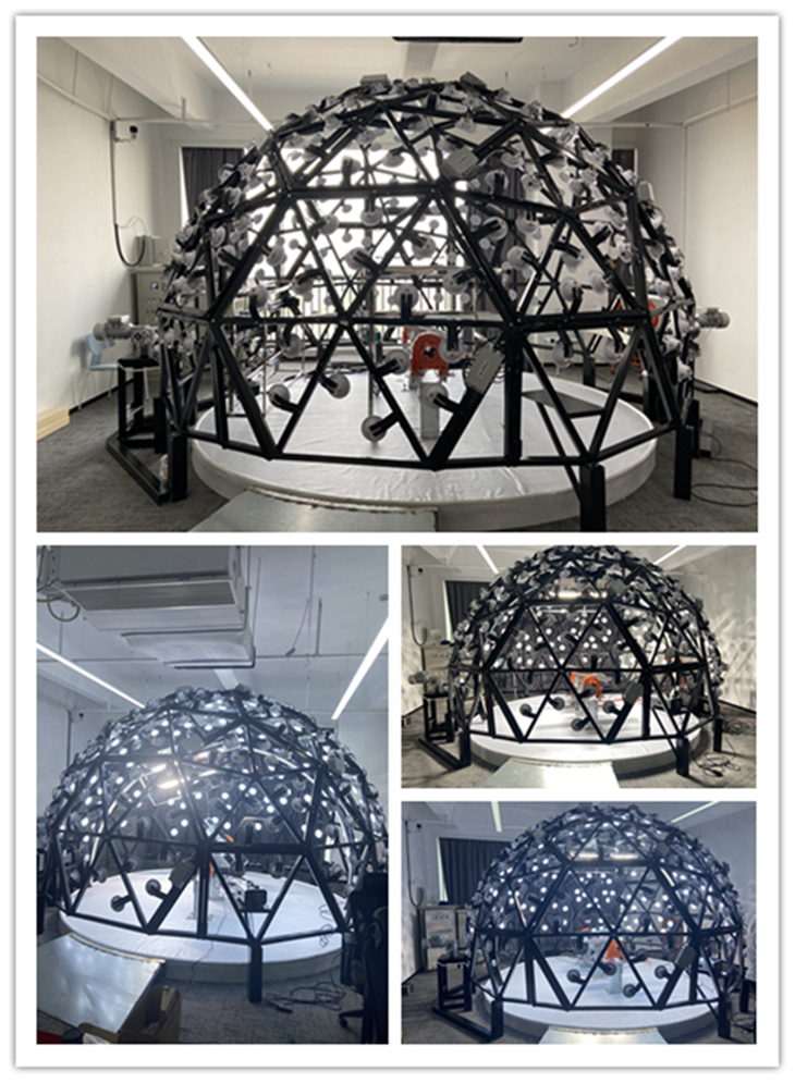 采用可拆卸獨立單元組裝形式,實現大直徑大跨度的安裝,方便設備重新拆裝。矩形鋼構框架,分為六邊形和五邊形2種結構單元,每個單元有六個或五個三角型,每個三角形內有等大的三個擴散光源。為便于實驗和參觀展示,主體結構留有一個寬約0.6米、高0.8米的入口。主體框架結構中還包含固定發光體的光學機械裝置及發光體移動滑軌。