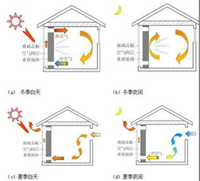 | 應用 范圍 | 被動式太陽房:直接受益式太陽房、集熱(蓄熱)墻 | ||||