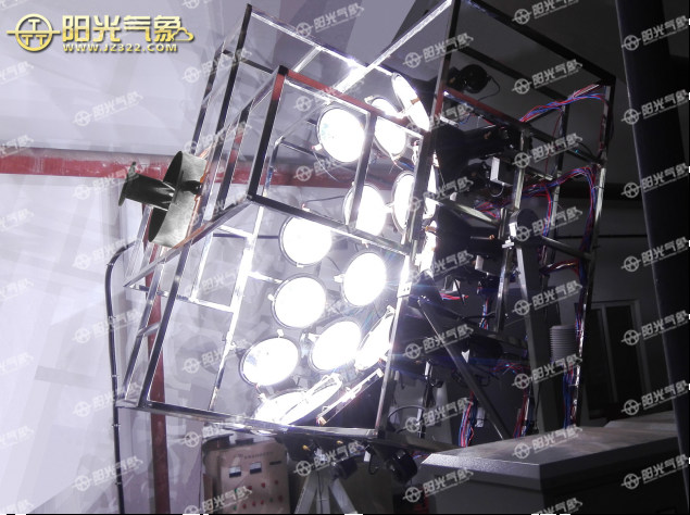 1.1  TRM-PD1H型聚光式太陽模擬發射器(矩陣式)錦州陽光科技發展有限公司根據多年太陽模擬器生產經驗開發的矩陣式模擬光源(稱人造太陽),專用于太陽能產品室內測試的實驗設備TRM-PD1H型聚光式太陽模擬發射器(矩陣式)具有操作簡單、使用方便,安全可靠的特點。模擬器光源采用(20)組獨立的聚光點光源,組成矩陣式結構,光源的個數位置光強都靈活可調,以保證有效輻照面積內的光均勻性和穩定性。采用主機現場與微機網絡聯合定時控制功能,可以手動或自動啟動光源,定時控制發光時間,為保證光源質量,用太陽輻射儀實時監測光源的輻射及亮度,由于氙燈照射溫度較高,設有測溫報警及電氣漏電保護裝置以保證系統的安全。該產品適用于檢測中心,科研機構,太陽能產品生產廠家等單位。