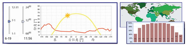 (6)可以針對(duì)不同的建筑、不同時(shí)間段進(jìn)行模擬計(jì)算軟件中采用動(dòng)態(tài)建筑模擬,考慮到建筑所有相關(guān)的參數(shù),包括幾何結(jié)構(gòu)、方位和熱質(zhì),提供詳細(xì)的隔熱數(shù)據(jù);同時(shí)軟件在計(jì)算中,由定位坐標(biāo)和地平線共同確定太陽的位置,每四分鐘更新一次,因此甚至可以專門針對(duì)某小時(shí)、某天或者某段時(shí)期內(nèi)的太陽能系統(tǒng)進(jìn)行模擬計(jì)算。