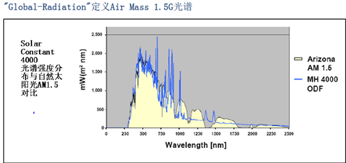 光譜分布 Class B   每只光源配有光學過濾片 光譜符合A.M. 1.5級  標定范圍:310~2800nm