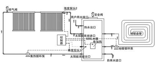 本試驗室采暖采用太陽能熱水器和地暖相結合方式: