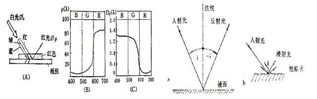 所謂反射是指選擇反射,非透明體受到光照射后,由于其表面分子結構差異而形成選擇性吸收,從而將可見光譜中某一部分波長的輻射能吸收了,而將剩余的色光反射出來,這種物體稱為非透過體或反射體。本儀器就是利用此原理,采用光電轉換感應原理,它與多功能數字感應器配接使用,均能精確的測量出不同材料的反射率和不同光源的光譜范圍。儀器的感應元件采用了繞線電鍍式多接點熱點堆,其表面涂有高吸收率的涂層,感應元件的熱接點在感應面上,而冷接點位于一起的機體內,以便直接取環境溫度。為了防止熱接點單方向通過玻璃罩與環境進行熱交換影響測量精度,采用了兩層玻璃罩。當有光波通過反射片反射過來的時候,接受儀的冷熱接點就會產生溫差即產生電勢值,也就是將光信號轉換為電信號輸出,在線性誤差范圍內,輸出的信號與光波通過反射片反射出的光照度成正比。光的鏡面反射與粗糙面反射示意圖如下: