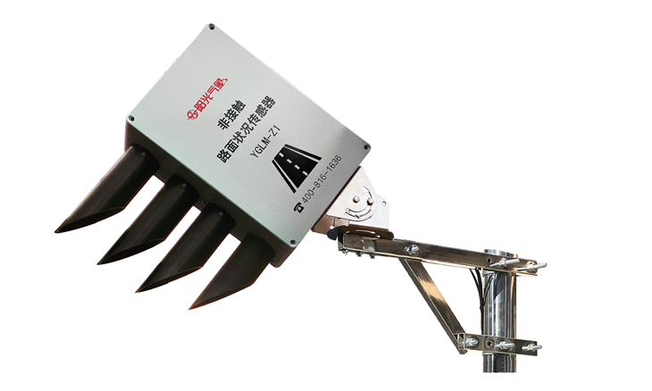 YGLM-Z2型激光遙感式路面狀況傳感器采用多光譜測量及激光測距技術,傳感器不需要植入路面內即可準確地檢測出道路表面結冰、積雪、水膜的厚度及濕滑程度、路面溫度等要素,監測儀集成了微型處理器來識別道路路面狀態。水對不同波長的吸收是不同的,如果在道路或跑道上有積水,其光譜屬性就會改變。進而測量到路面的各種不同的狀態,例如潮、濕、冰、雪、霜等。而激光測量原理,又保證對水、冰、雪的精確測量。水和冰是分別被獨立檢測的,激光可以大范圍的測量積雪的厚度。這些突出特點、強大的性能使得它能夠在道路出現異常狀況前就精確預警,這樣我們就可以提前發現可能導致駕駛危險的所有因素,以便及時采取預警和補救措施。