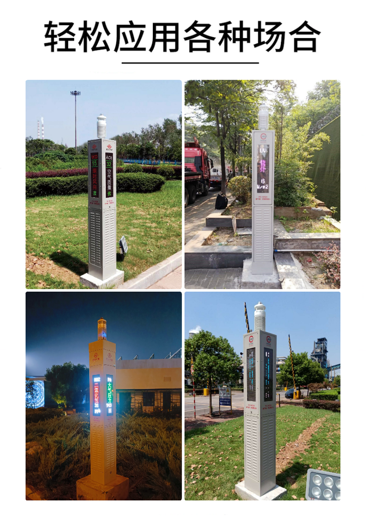3. 本機自帶四面LED顯示屏,可實時顯示監(jiān)測數據,也可遠程傳輸至其它大顯示屏;