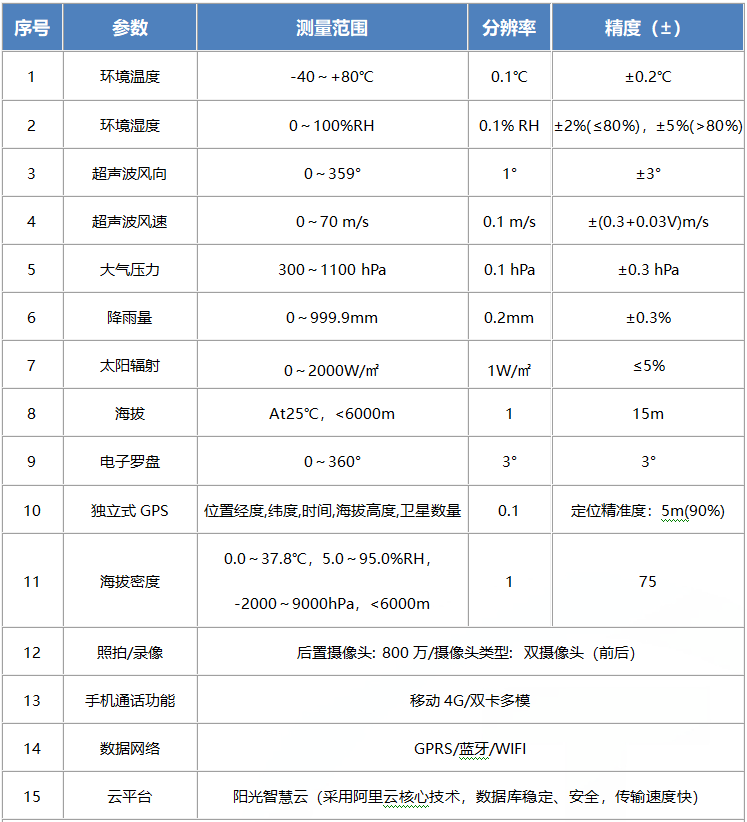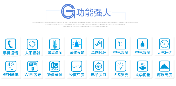 ●功能強(qiáng)大超越了目前所有的手持產(chǎn)品:測量要素為:風(fēng)速,風(fēng)向,氣壓,環(huán)境溫度,環(huán)境濕度,太陽輻射,露點(diǎn),海拔高度,經(jīng)緯度,GPS衛(wèi)星定位,電子羅盤,,照拍/錄像 , 手機(jī)通話功能 , GPRS無線數(shù)據(jù)網(wǎng)絡(luò),還可以拓展CO、NO2、SO2、O3、TVOC、PM2.5、PM10等監(jiān)測要素。