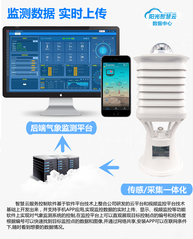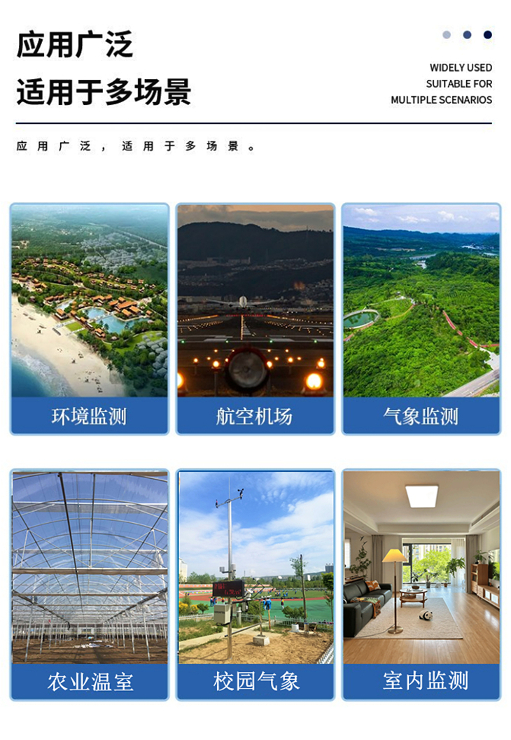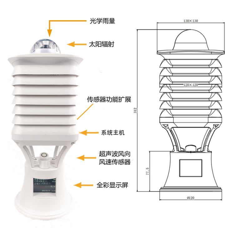1. 一體化結(jié)構(gòu)設(shè)計(jì):采用一體化設(shè)計(jì),實(shí)現(xiàn)了太陽輻射、溫度度、風(fēng)速風(fēng)向、氣壓、降雨量、氣體、噪聲粉塵等多種要素同步監(jiān)測。同時設(shè)備支持定制,可根據(jù)需求增減監(jiān)測要素。