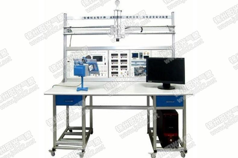 YG-JXST04型小型模擬太陽升降、太陽跟蹤、光伏發(fā)電、充電逆變實訓裝置用200W節(jié)能燈模擬太陽,模擬太陽可以左右移動1180mm,上下620mm到810mm米之間,模擬太陽的弧線升降的全過程,而且模擬太陽升降的時間可以根據(jù)實驗需要來改變的新能源教學設備。