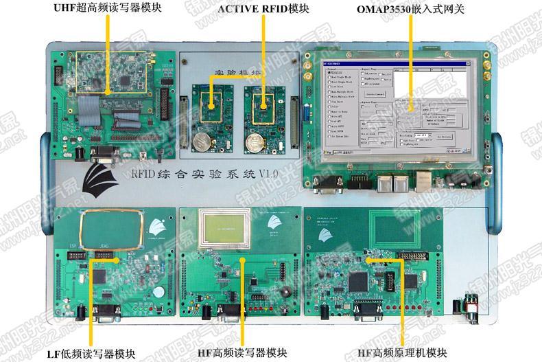 YG-RFID型創新教學實驗系統適合于支持射頻識別RFID原理與應用、射頻識別RFID技術等系列課程的實驗教學。系統包含125KHz的LF低頻模塊、13.56MHz的HF高頻模塊、915MHz的UHF超高頻模塊、13.56MHz的HF高頻原理機模塊、2.4GHz的Active RFID模塊、Cortex A8雙核多功能嵌入式網關模塊。學生通過學習相關RFID實驗,掌握低頻、高頻、超高頻及有源RFID的國際標準、原理與技術。